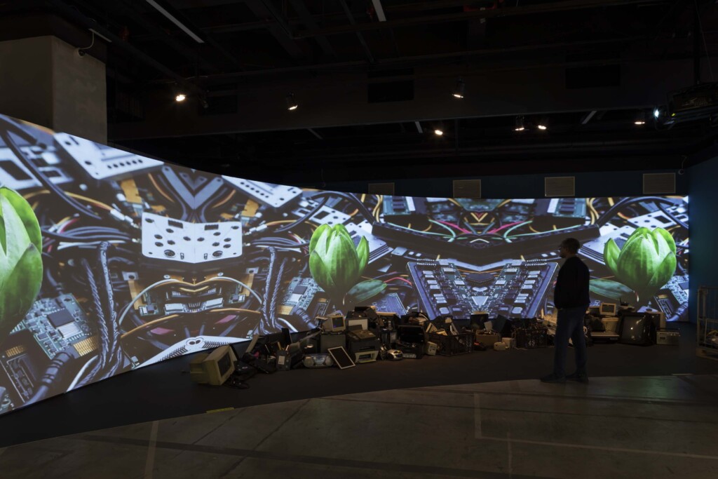 This dynamic, however, is not confirmed in the images of Corrosive Beauty, where roots intertwine with cables and a flower sprouts from motherboards — but fails to bloom. Created entirely with artificial intelligence (Sora), the video captures the devastation and attempts at resilience of an ecosystem in flux, striving to defy the logic of destruction, trying to survive — but failing.