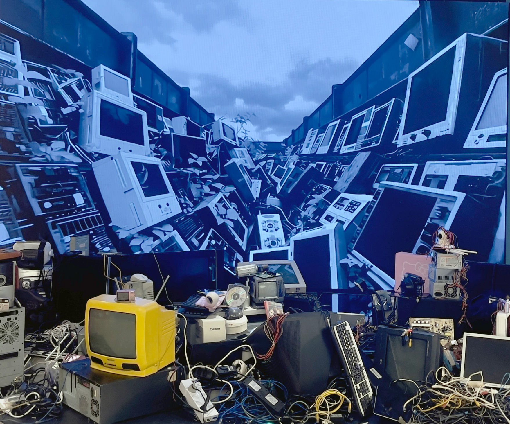 Beleza Corrosiva is a participatory video installation that addresses the environmental impact of digital technologies. It combines a video entirely created with AI (Sora), developed within the context of the OpenAI Artist Program, with an electronic waste donation station. Together, the video images—depicting a dystopian future in which rivers are overtaken by electronic waste—and the growing piles of discarded devices produce a highly mobilizing effect. At the end of each exhibition all materials are donated to electronic waste recycling cooperatives. Beleza Corrosiva (2025) bu Giselle Beiguelman was comissioned to Movimentos Miméticos at CCBB – São Paulo and presented at Museu de Arte do Rio Grande do Sul (Sep. 13-Nov.30). It is on view in Rio de Janeiro and Campinas (FGV-RJ and Sesc Campinas-SP until June 2026).